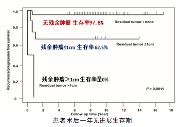 联合化疗的出现,大大降低了MOGCT的复发率,在一项针对57名恶性卵巢生殖细胞肿瘤患者给予手术联合化疗的调查研究中,手术无残余肿瘤加术后化疗的患者一年无进展生存率可高达97.8%。