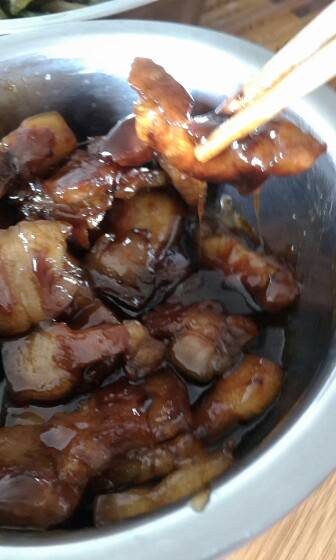 那个五花肉是宝宝的妈妈拿来的,半熟的,我也不知道干啥,就拿来做酱油猪肉,不过今天居然糊涂到没放酱油就煮了😂幸好是在旁边洗菜,发现了,不然就白煮了,后面才加上酱油的,都还可以煮成拉丝的酱油猪肉,广东人最爱啊😂😂