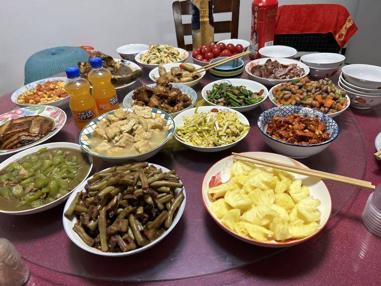 饭菜很丰盛,虽都是家常菜,家常味道。倒还算是可口的。。