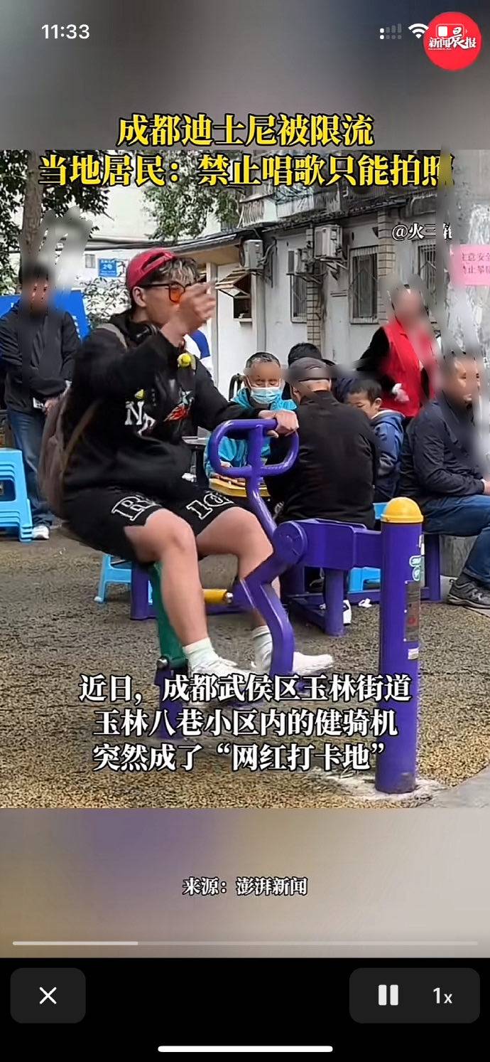 昨晚我朋友发一个成都迪斯尼爆火的视频,开头把我看得一头雾水,仔细了解又笑得肚疼。前天我去了玉林路,跟打卡地几步之遥,错过了这泼天富贵,哈哈。现在的年轻人,真有点莫名其妙,见过排长队看大熊猫的,没见过排长队看健身器材的。