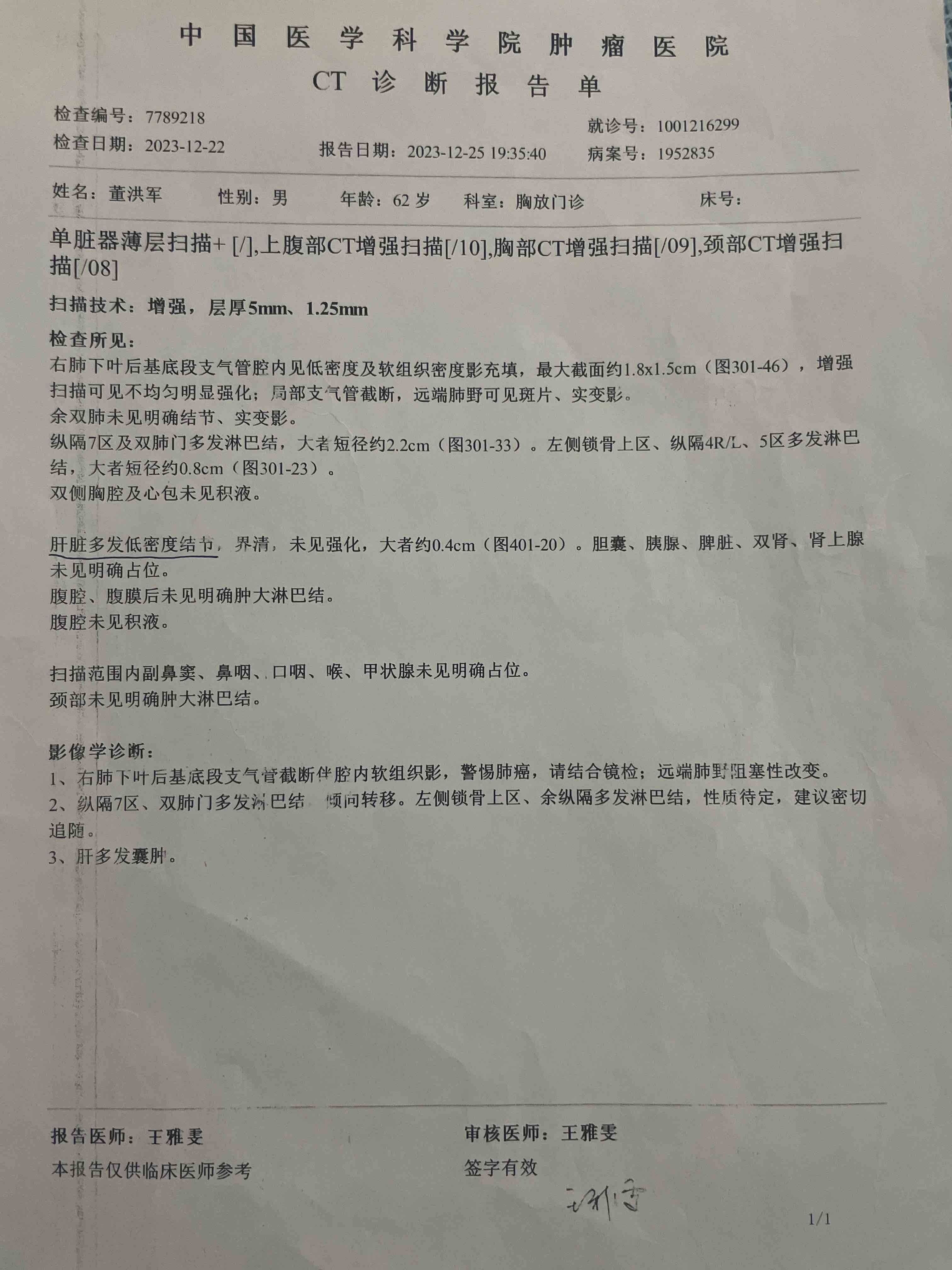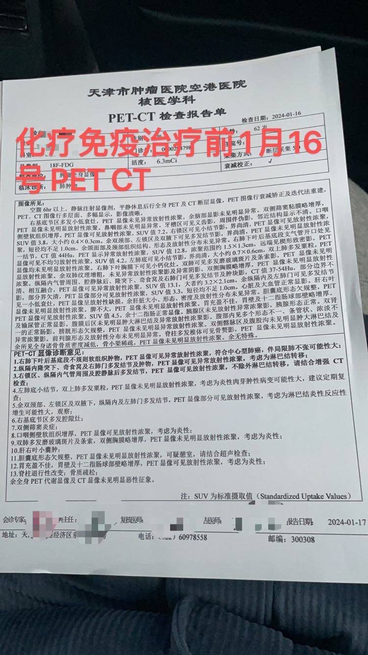 父亲是右肺下叶肿瘤,手术关键是有没有左肺门的转移,专家说右肺下叶一般不会引流转移到左肺门,然后让助理看看治疗前后,右肺门那是不变还是变小,结果助理说变小了,我猜想,按专家的思路不变就不是肿瘤,要是变小那有可能是肿瘤,我想让医生看看天津的PETCT报告,医生简单看了下,我说PETCT里写着左肺门多发淋巴结怀疑是炎性反应增生可能性大,但是PETCT里报了右锁骨区有小结节不除外转移,然后专家说以他们医院的CT为主,我知道肿瘤医院CT没有报右锁区结节。之前我看PETCT里好多个转移多发淋巴结很是揪心,但这些胸外科大拿好像都没把淋巴结多发转移太当回事,看起来多发的淋巴结转移应该不是手术禁忌,最后这次外科评估手术给开了好多术前检查的单子,增强CT和PETCT都要做,我真是担心辐射啊,但为了治病救命,辐射就只能忽略了,然后还开了住院证,给预约了4月26号挂号,要我在26号前做完所有检查再找他们评估手术,到时候再给我住院证。
