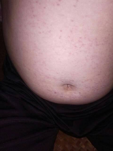 没怀孕的话,肚子这么大要多控制饮食了。皮疹要重视,最好去检查一下