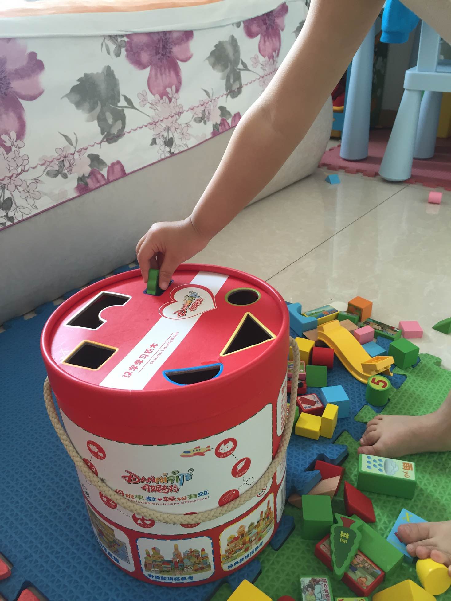 识字大积木益智玩具收到啦,感谢圈圈送给这么好的礼物,臭宝特别喜欢,每天回家第一件事就是找这个玩具,每天出门手里还要拿一块积木