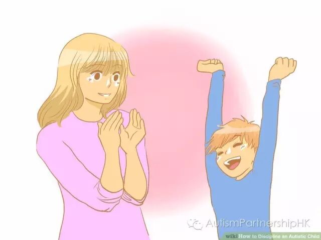 第2步:利用奖励来鼓励孩子克制自己的行为。熟悉代币制度运用法的家长和孩子可以利用代币来作奖励。否则,家长可以手握奖励(例:孩子喜爱的零食、平板电脑等)。特别是在干预初期,孩子能保持克制行为的时间非常短,所以,家长要把握时机,奖励过程要快和直接;同时,表扬孩子时用简明的语言,使孩子知道适当的行为,例如:手乖、安静等,使孩子能连系克制自我刺激行为和奖励的关系。