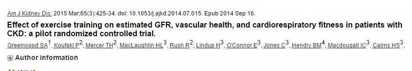 2.Howden EJ, Coombes JS, Strand H, et al. Exercise training in CKD:efficacy, adherence, and safety. Am J Kidney Dis. 2015;65:583-591.