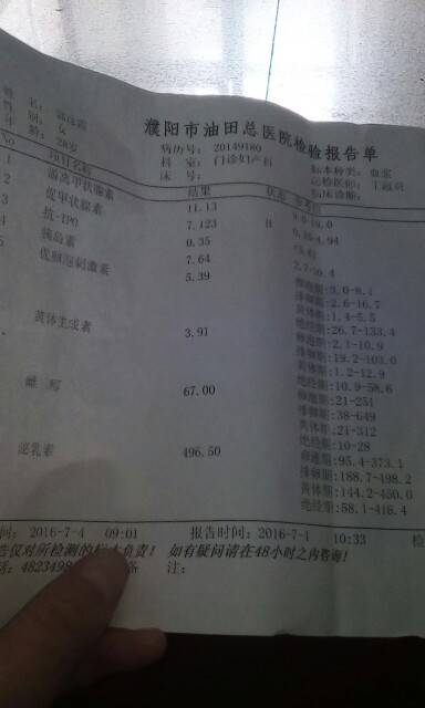 下午结果出来了,我自己就看出来促甲状腺素还有泌乳素高了,其他正常。医生说我是甲减,以后生的孩子可能会智力低下,要我去看内分泌科。我一听吓傻了,赶紧去挂了内分泌科,然后内分泌科医生又说我是亚临床甲减,就给我开了一盒药,每天四分之一,一个月后复查,开完药医生就看下一个病患了。