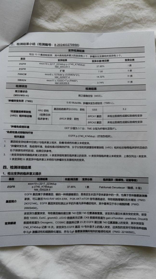 淋巴结清扫第五组淋巴结一枚转移,基因检测egfr扩增消失,但是19插入丰度变高