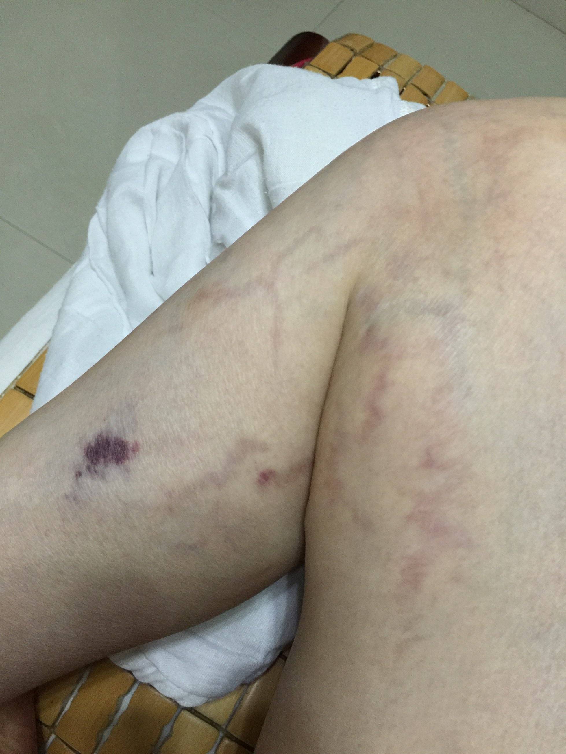 比我的严重,我的只是两只脚都淤青,不过休息好了,就没有了