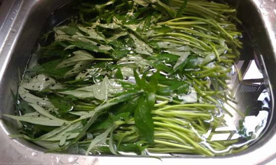 我妈妈自己种的薯苗,下过雨,抽了叶子,摘来吃,超嫩的!