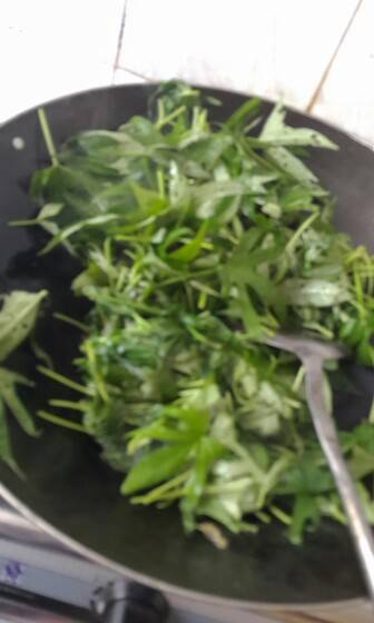 薯藤,我最爱,爆了蒜头,薯藤,再放腐乳下去,炒,在放糖!😍😍好久没吃了!!流口水了!!!