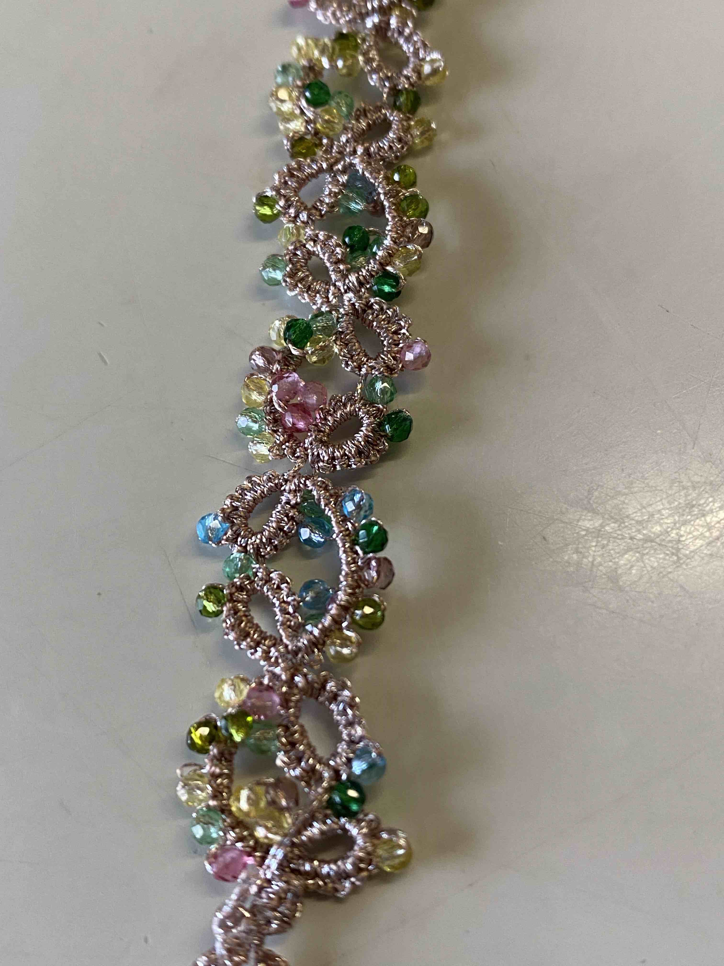 梭编是我2024年学会的新技能,它不但让我挑战了自己,说真的,学梭编要有相当的耐心,一针梭错,无法继续,我曾经差点用剪刀把梭了一半的手链剪个稀巴烂,并想停手不再梭了最后还是慢慢的坚持下来了,同时它也给我带来了许多快乐,不但让我感到自己还年轻聪明,能学习新事物,还尝到了分享的快乐,比如同学好友聚会我会带上几条简单的梭编手链分享,大家都好高兴。