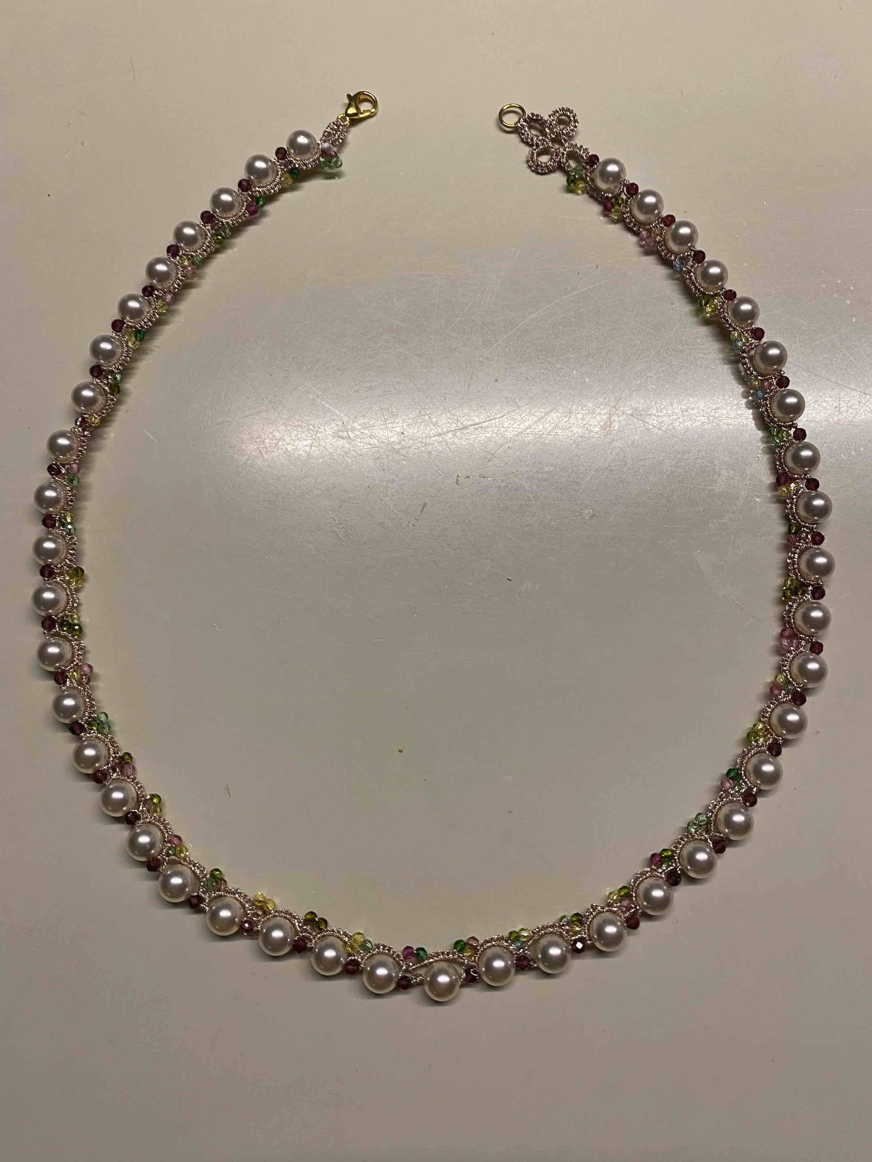 梭编是用梭子编织的一种手工,最早在欧洲用于编织蕾丝花边,作品细致轻薄,极其精致漂亮。现在改进后的梭编,加上各种碧玺水晶等珠子,编成手链,耳环和项链等饰物,深得爱美女性喜欢。