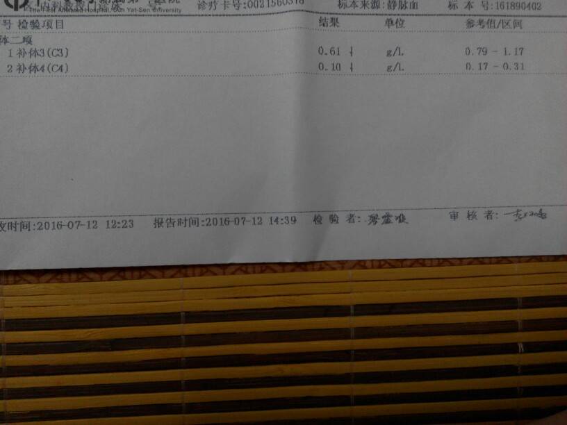你的補體,很好啊。就是尿蛋白不好。你看了楊岫岩教授多久?好多指標,楊岫岩教授都不看的。他說過,查了浪費錢。上次我老公說,怎麼查那麼少,反正都扎了一針,我就說,浪費我的血啊。