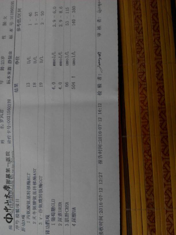 昨天去了广州中山一院看了,没有预约到杨教授的号,挂了副教授的看了!去到好多人,医生看了还是要开化验单先去验血先,验完血问结果什么时候出来,说要等到明天下午才能出齐!我晕倒。。。一个大医院怎么那么慢啊,以前我在惠州看人家几个钟头就好了!好吧,那没办法就只能等了!等到结果出来了,人家副教授今天又不上班了,只能随便挂了个专科看,开了半个月的药就回来了!这些我拍的都是化验不达标的!好多啊!