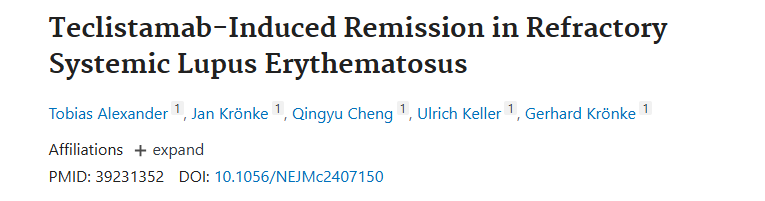 2024年2月:该团队再次在《新英格兰医学杂志》上发表论文,报道15名自身免疫病患者(包括8名SLE患者)接受CAR-T治疗后均达到显著缓解,且完全停止免疫抑制治疗。