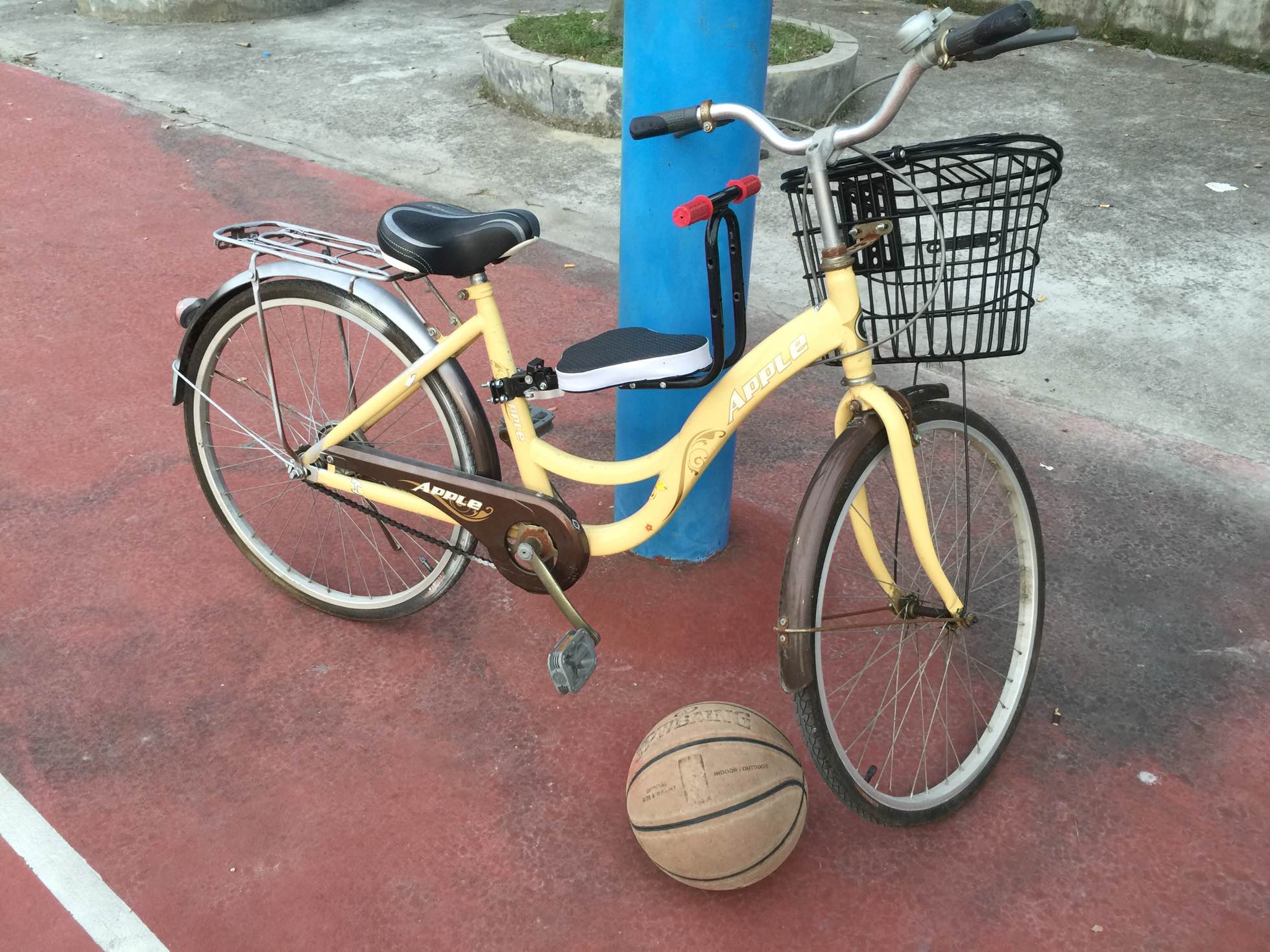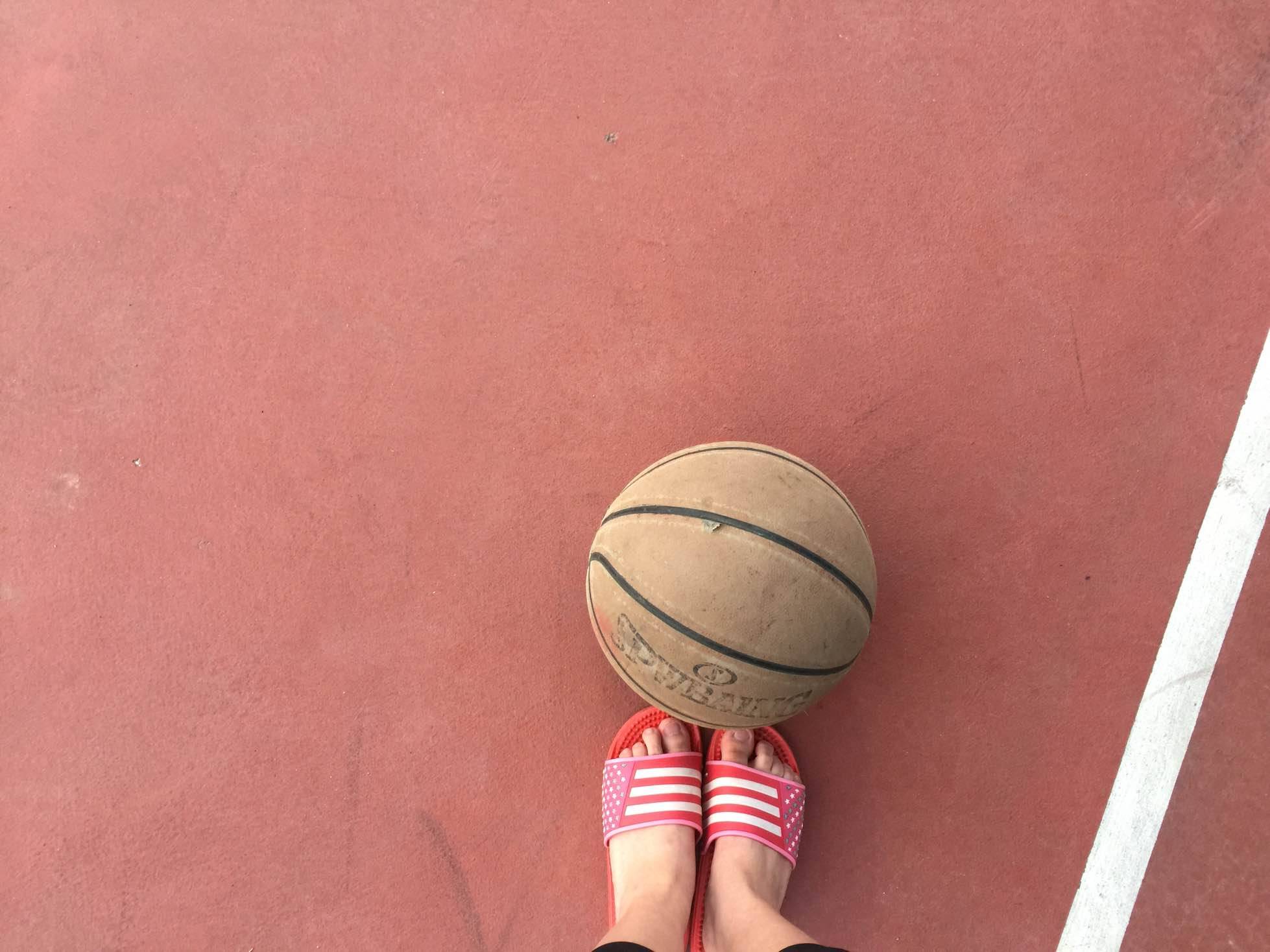 篮球跟拖鞋好像不太配喔~嘻嘻……