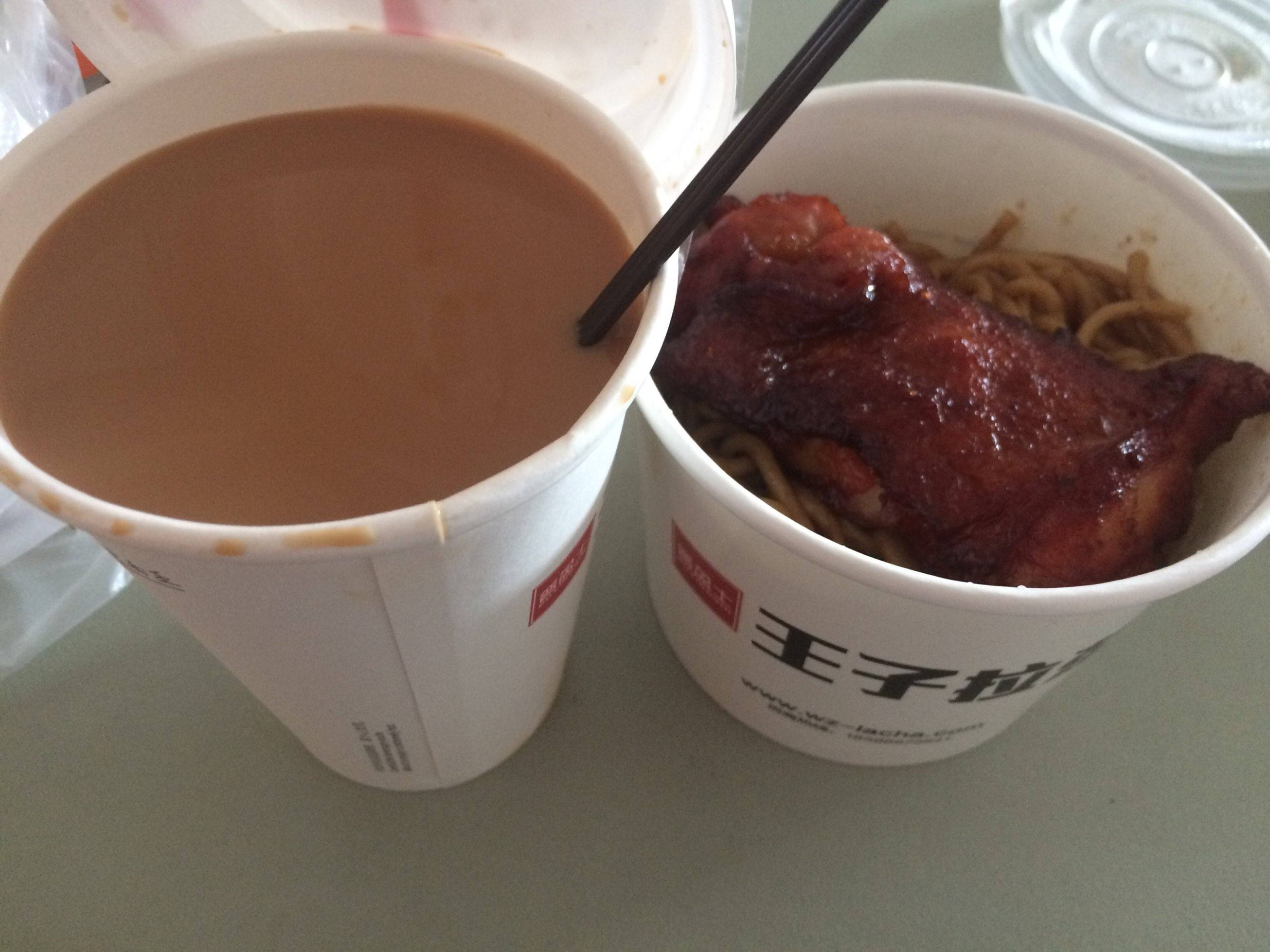 奶茶和鸡扒车子面