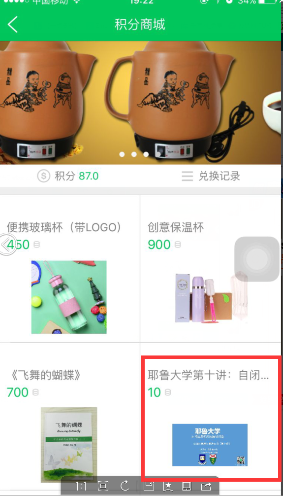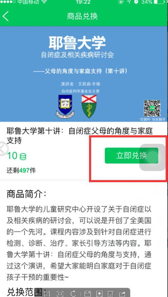 2、打开积分商城,找到《耶鲁大学第十讲:自闭症父母的角度与家庭支持》