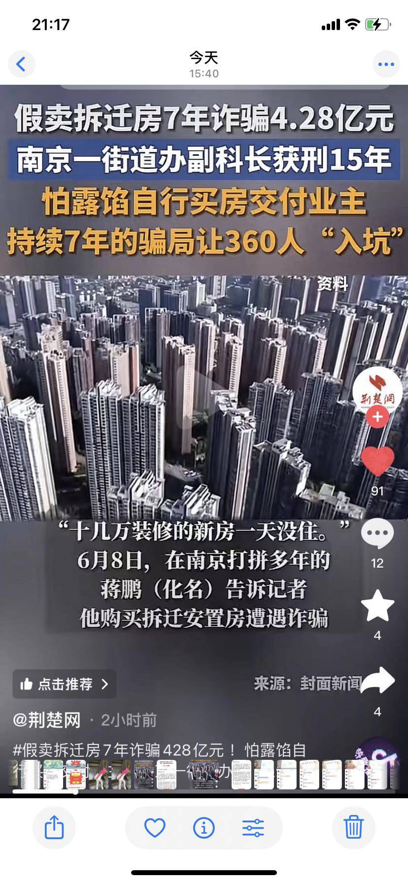 拆迁拿了二套安置房,一套给儿子做婚房另一套想着闲着也是闲着就出租了,谁能想到房产证在我这里房子却给租房人给卖了😭三百六十套啊不过没装修的他们各自通过自己的渠道拿回来了,还有几十户装修了的他们有的誓同房子共存亡,去年开始先用一家做案例,评估装修费十一万多,法院一审宣判让赔付十一万多,我们不服啊,自己的房子出租了在不知道的情况下给卖了现在还让我们拿十几万的装修费,你说心里给闹的慌,他们自己给人骗了自已犯了错不能让我们买单吧,上诉上个月29日南京市中级人民法院开庭审理,被告没付诉讼费用等同于没上诉,律师说钱都买房子了现在没有钱给上诉费了希望维持原判,原告不同意协调希望房子恢复原貌,最后被告在法院门口撒波打滚顺地叉,唉这么多天下来了也不知道法院咋判你说摊上这么个事儿烦不烦啊这都几年下来了