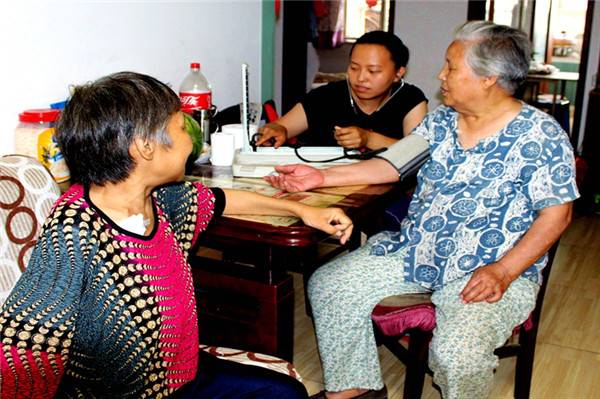 朱杰为年过八旬的婆婆测量血压。图片来源:河西文明网