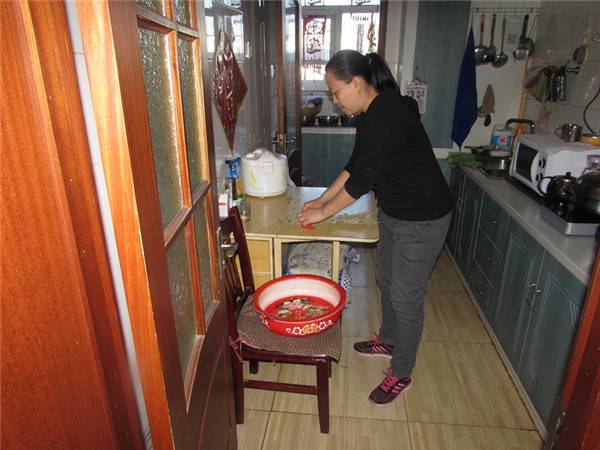 朱杰结婚前是家里的独生女,2011年结婚后,小两口很快有了孩子,“四世同堂”一家人过得甜甜蜜蜜。然而,家里的平静很快打破了。2014年2月,朱杰公公突患脑梗住院,需要有人照顾。当时,朱杰的孩子才2岁零1个月,丈夫工作繁忙又脱不开身,作为儿媳妇的朱杰便主动扛起了重任,朱杰毅然辞工,伺候公公、照顾孩子。她每天都会向大夫询问公公的病情,按时给公公用药、喂饭、喂水、按摩,把老人照顾得无微不至。老人常常感慨:“儿媳妇这么好,我真是没啥说的。”由于心情焦虑,身体本来就不好的婆婆身体也每况愈下,这一年7月,婆婆也因尿毒症病发住进了医院。看到眼前的情景,朱杰只好咬牙坚持着。在她的悉心照料下,公公通过康复理疗,病情有所好转,婆婆的身体状况也好了很多。提到儿媳妇,公婆也总是不停地说:“好,好,她把我们照顾得很好,跟亲闺女一样。” 朱杰每日定时给婆婆准备服药。图片来源:河西文明网 哪知,公婆病情刚刚有所缓解,丈夫年过八旬的姥姥又查出了乳腺癌,医生告知必须手术治疗。老人住院期间,朱杰又成了陪床的第一人选。她无微不至地照顾老人,寸步不离地守护在老人床边,给老人喂饭、擦身、洗澡,搀扶老人上厕所,赶上老人输液期间去洗手间,朱杰就成了临时的“输液架”。对此,朱杰从没有一句怨言。经过手术,老人的恶性肿瘤全部切除,身体也恢复得很好,生活基本可以自理了。但是,习惯了外孙媳妇的悉心照料,离开了朱杰,老人便没了精气神儿,一会看不见朱杰,心里就不高兴。 “好媳妇”朱杰一人承担起所有家务。图片来源:河西文明网