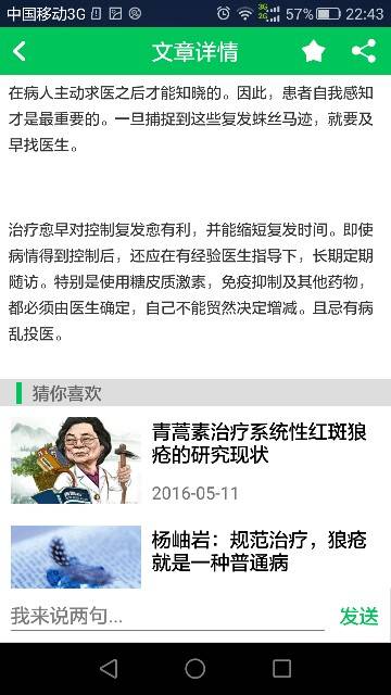 如图,有时候,我们经常会有些小感冒,口腔溃疡,腹痛,关节疼痛,无力等症状发生。当然,也应该尽量避免此类症状发生,因为我们毕竟免疫力低点。但是,每次有腹痛,关节痛等稍微严重点的现象发生时,都会比较敏感,担心会不会是病情复发了?不是害怕,只是因为有意识去敏感,如果是复发,及时发现,及早治疗,避免耽误治疗导致恶化,所以,每次稍微有点大毛病时,都会特别有意识去验血规,检查白细胞,红细胞数量,但是,常规检验看不出一些问题。所以,我想咨询下大家,复发主要是看什么指标?具体参数是多少?稍微有大毛病做哪些检查?如何及早发现?
