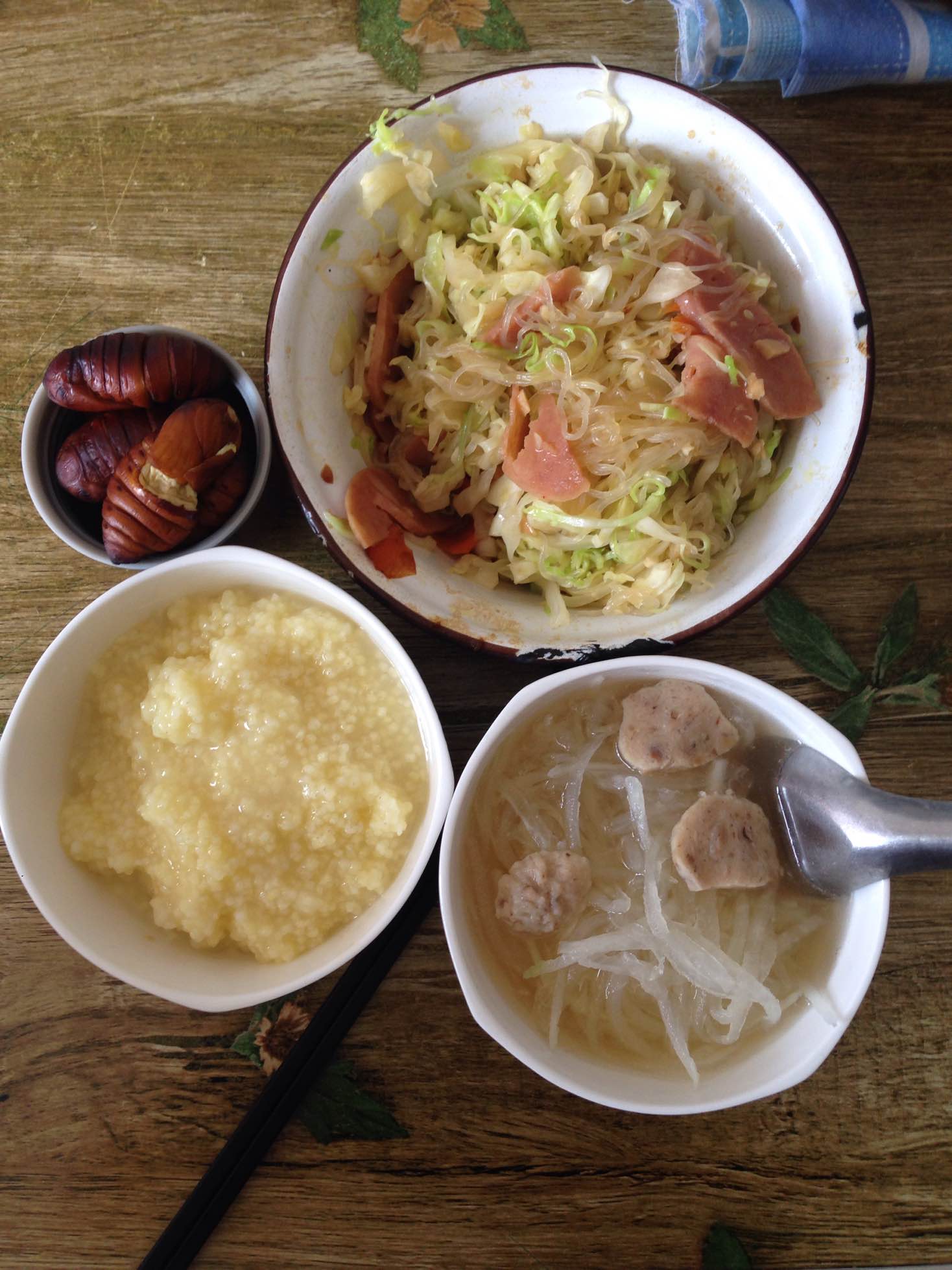 好丰盛哦,就是不敢吃蚕蛹