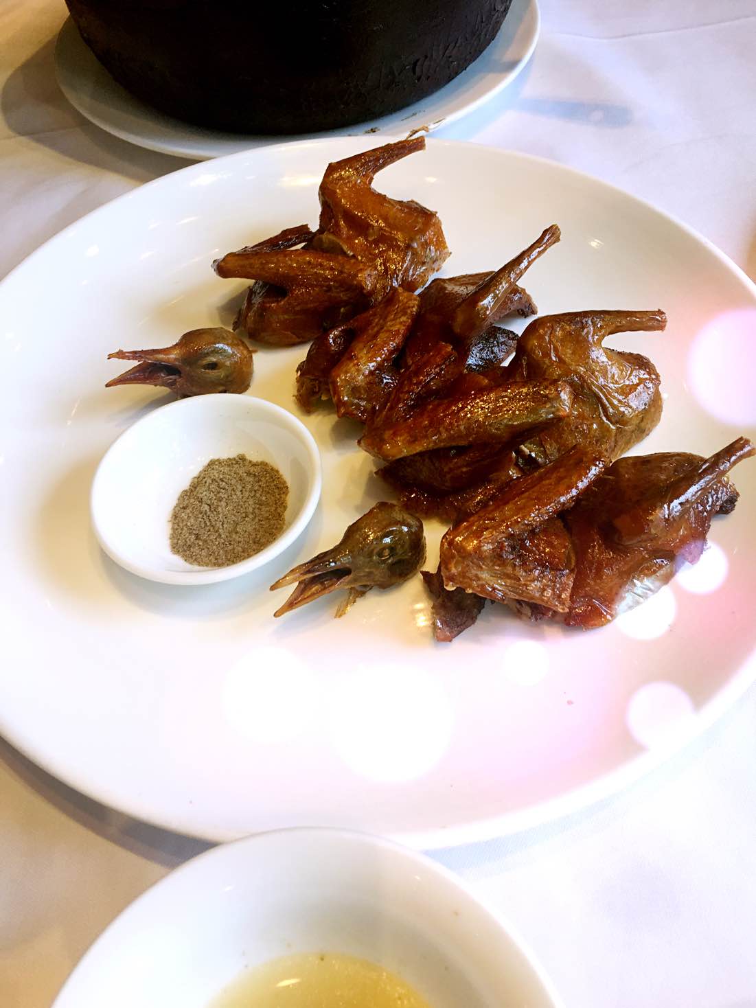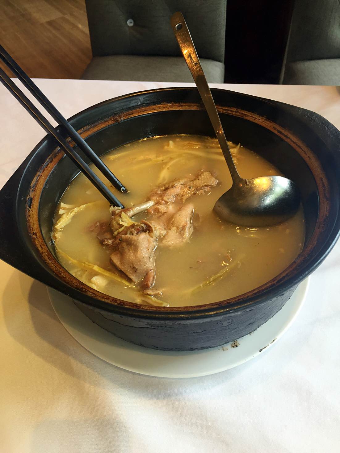 老鸭汤是清补的,可以吃,我经常喝。那个乳鸽炸的吧?倒是有点上火