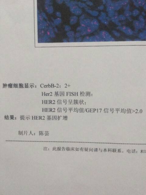 fish检测结果:her2基因扩增。需耍靶向治疗。