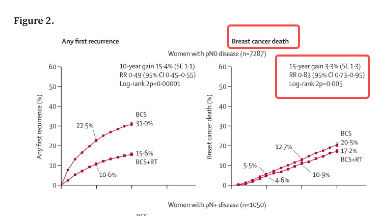 2011年的早期乳腺癌试验协作组(EBCTCG)的全球大样本研究结果证实:保乳术后接受放疗可显著降低局部复发风险,并使乳腺癌相关死亡率下降3.3%[1]。这意味着,放疗不仅能防复发,还能帮你“活得更久”。
