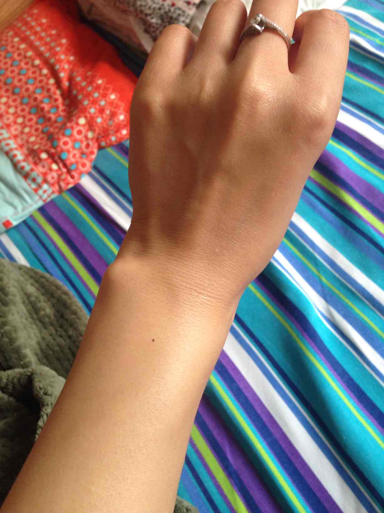 看看我的手臂。刚化疗后那几天血管疼。擦几天就不疼了。我是一直擦到下次化疗。