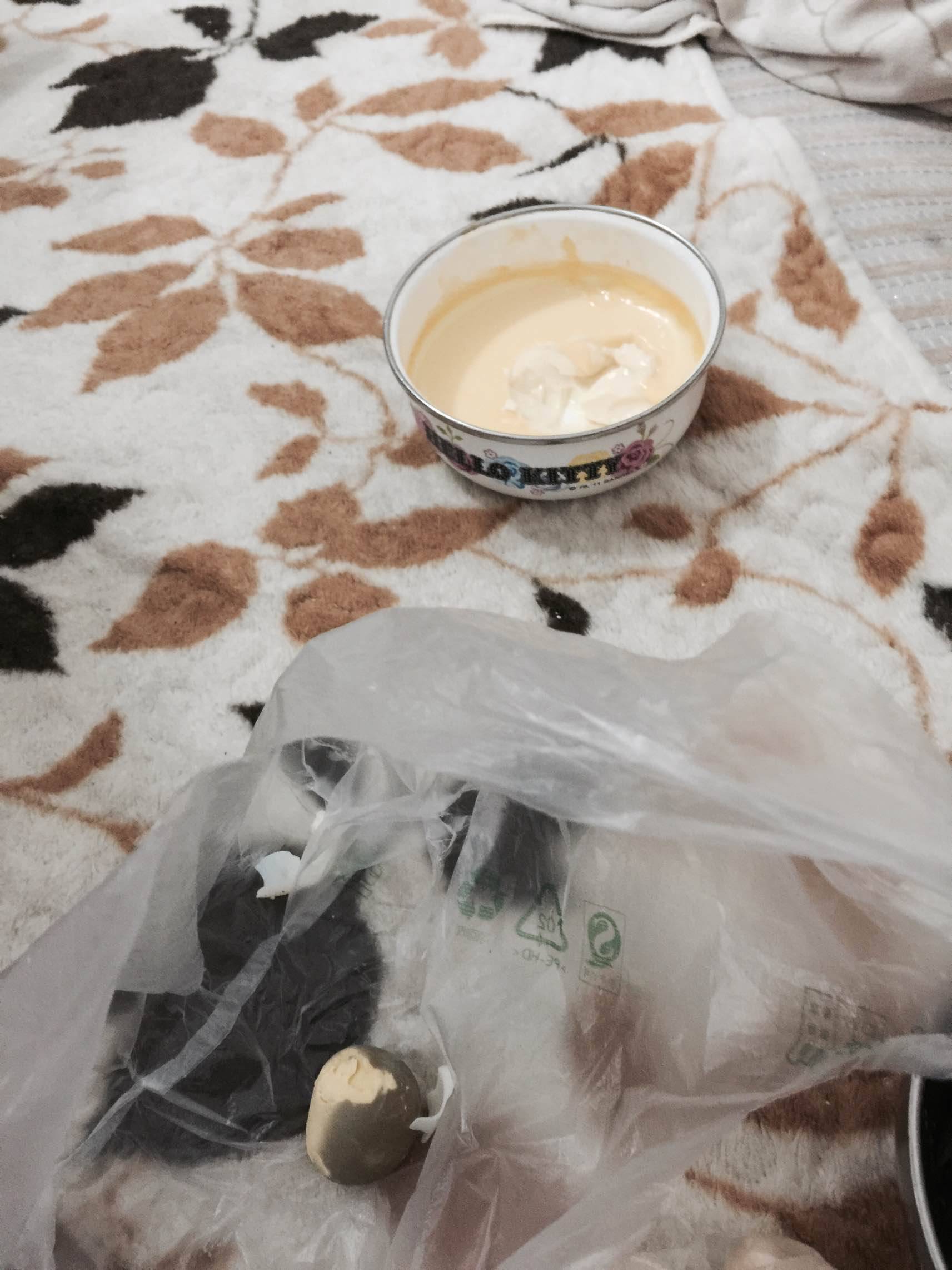 昨晚剩下的牛肉,做了八九十克牛肉干零食。两个蛋青(狼疮肾不能吃蛋黄)。半个老北京鸡胸卷(被孩子们吃了一半)。鸡蛋布丁(放了蛋黄不敢吃了,孩子们抢光了……)。红糖小米粥(每天一碗贫血必备)。牛肉好香好酥,没有盐也可以。