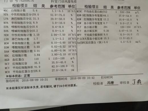 都不错就是血沉和尿蛋白