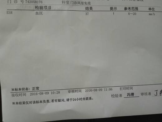 血沉有点高啊!其他挺好