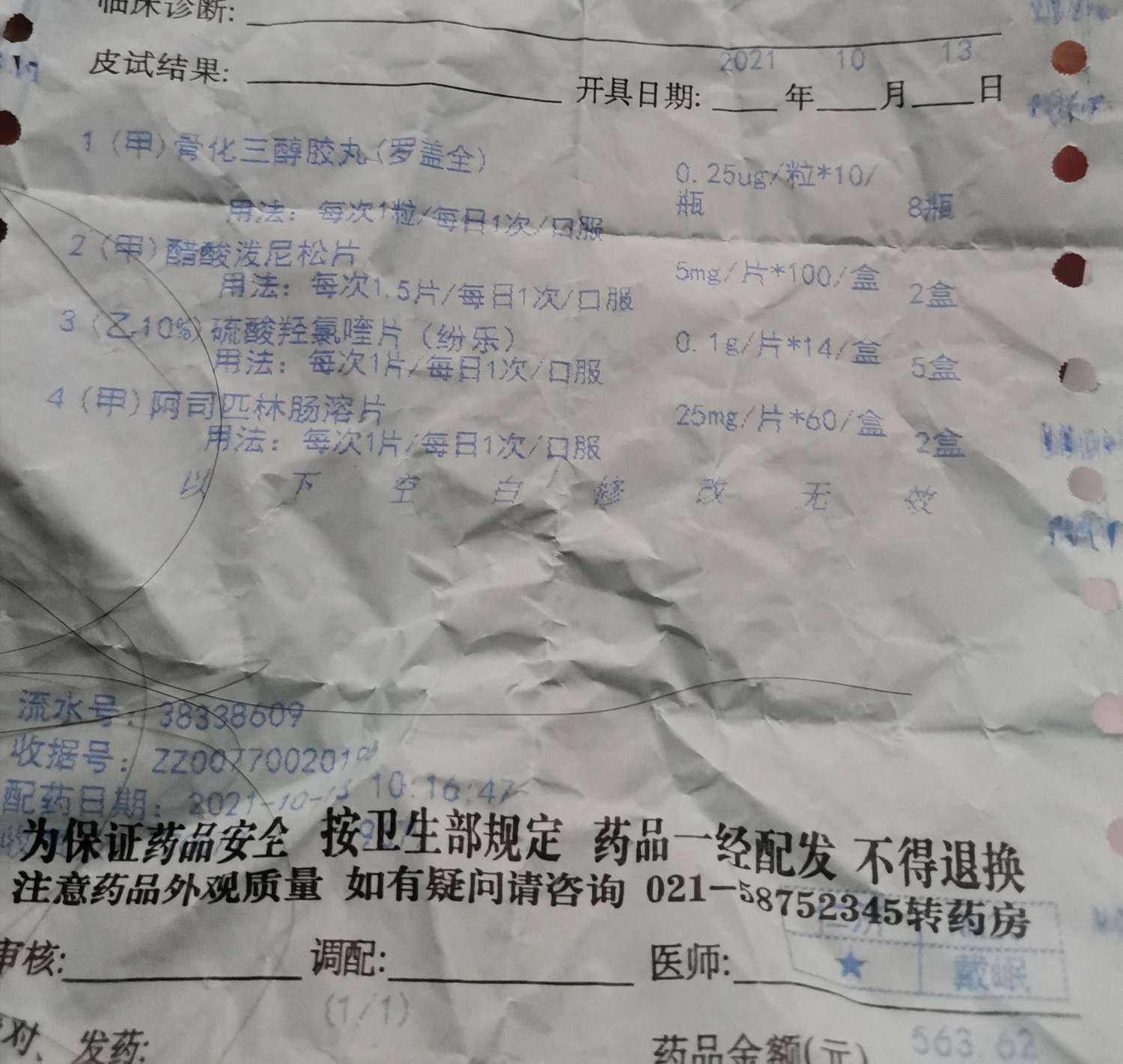 想找您要一下戴岷,如果不方便的话,可以拜托您帮我问一下嘛,我还挺焦虑的,希望能帮帮我。图片是上个月戴岷开药的单子