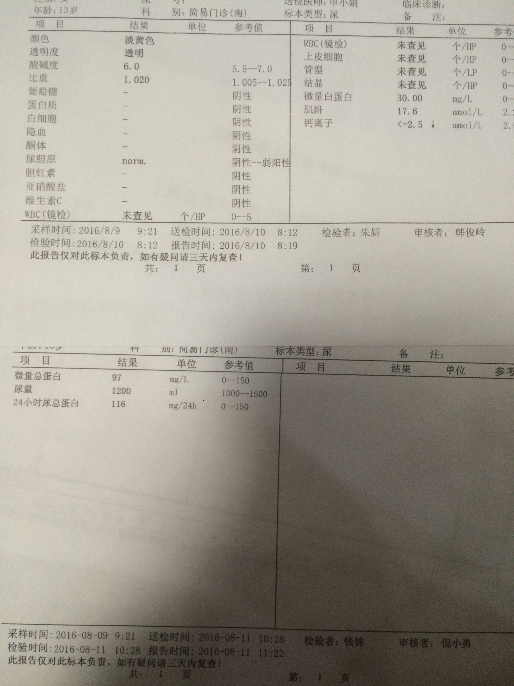带着疑问,我在我们当地医院重验尿常规,为了准确性,又查了24小时定量。结果完全正常。只是这次尿常规前,我让孩子先进行了冲洗。
