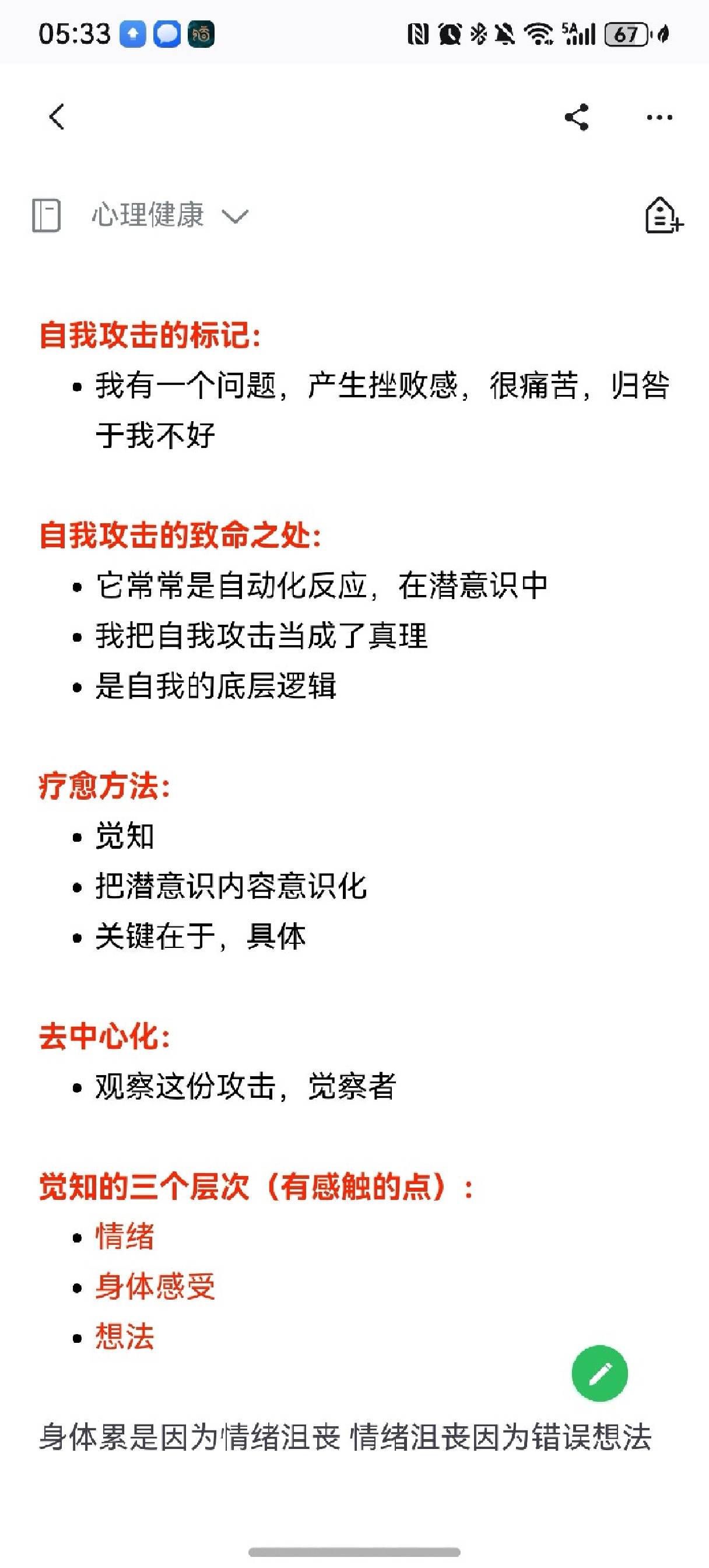 慢慢的,我发现自己变了 —— 犯错后不会再骂自己,被批评后能坦然接受,看到别人优秀也能真心祝福,不再随便否定自己的价值,真的不再自我攻击了。