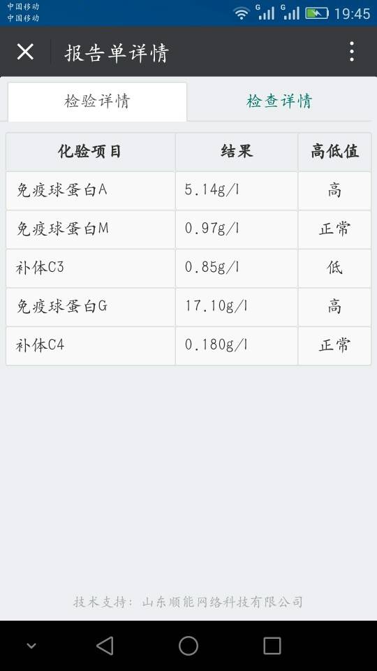 而且一直在0.8~0.9之间上下浮动,变化不大。免疫球蛋白也是,这两就没正常过,不过舒大夫每次都说我情况很好