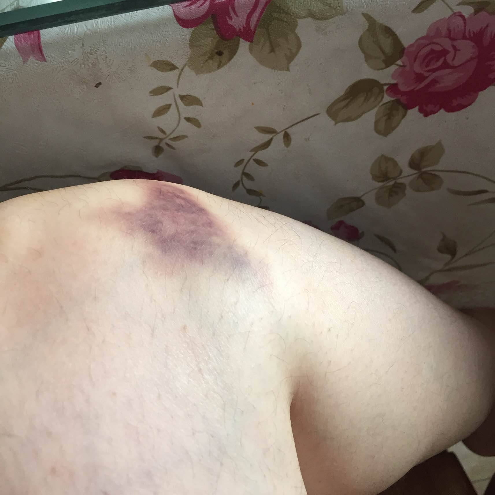 看是象碰撞的,也许在你无意识下碰到没发现,我有时也会这样不知什么时候就发现一块黑青,过两天就好了,别那么紧张