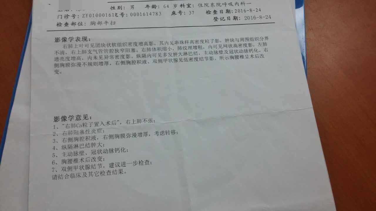 我父亲64岁,02年发现肝炎,一年年恶化,06年大出血摘除脾脏,08年肝癌在天津一中心进行了肝移植,术后八年一直服用抗排异药,保持得还不错,直到今年5月份突发脑出血住院检查右肺肺癌晚期并有脑瘤,脑部情况严重5月底开颅,脑瘤病理是鳞癌,怀疑是肺转移,开颅后我爸爸出院修养,7月下旬天气闷热开始有了胸闷喘不上气的症状,住院后发现胸水严重,直到现在还没出院,做了四次胸水病理无法确诊,做了活检穿刺疑似鳞癌,与脑部一致,因我父亲病程太久身体虚弱,多年服用的抗排异药其实就是降低免疫力的,医生说放化疗药物对肝脏损伤极大,因此植入了90多颗粒子,上周五我前往天津中医学院第一附属医院找医生开了些中药调理睡眠差,食欲差,出虚汗这些症状,暂时吃了四天还没太大改善,现在每天输液都是扩张支气管,消炎的,剩下的就是等基因检测出来看能否吃靶向药,我想求教我爸爸目前的情况有无我没想到或是医院没提到的更好治疗方案,我好怕因为自己的无知而耽误爸爸的病情,每日以泪洗面,请各位不吝赐教!