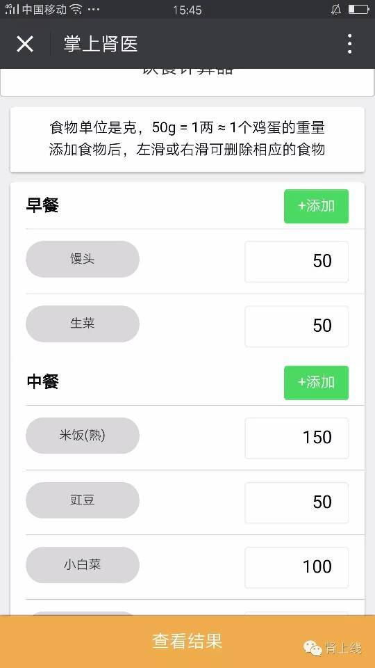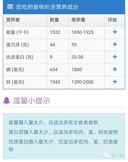 还有,你想知道每天吃的东西能量够不够,蛋白超不超,盐有没有多,输入食物重量就可以知道: