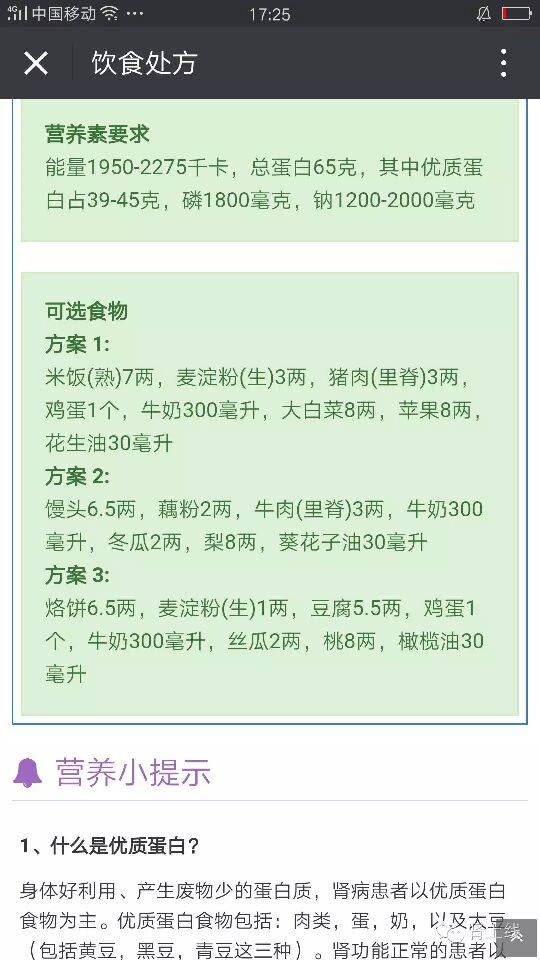 根据你身高,体重,肾功能,标准食物推荐:
