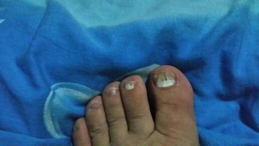 我以前也得过灰指甲我去药店买的亮甲来用效果还真不错,包了半个多月白色的东西就没有了,只是好像我的指甲壳里面全是水比你这还严重,你可以买来用下。