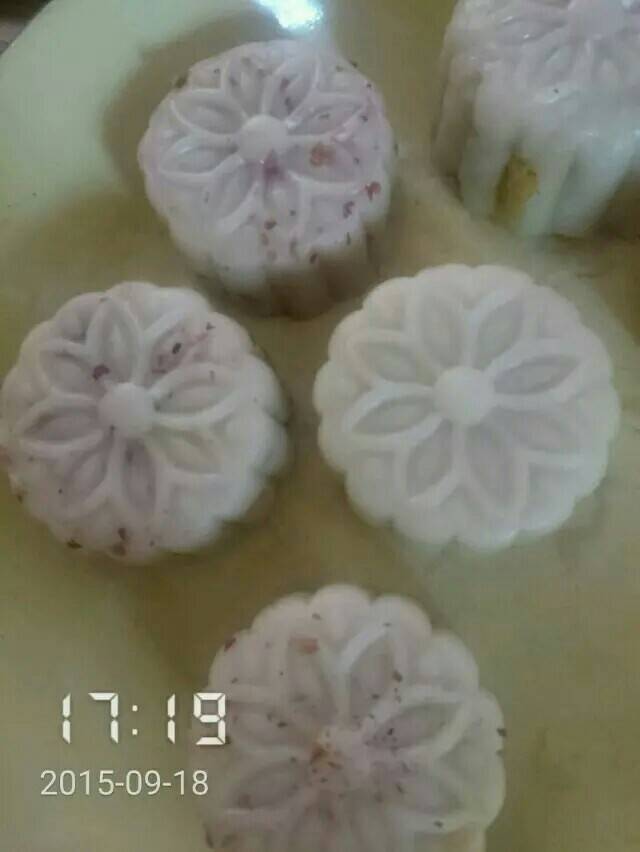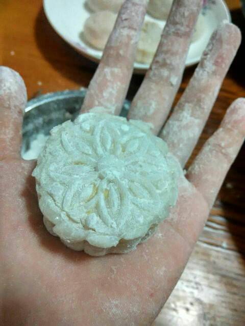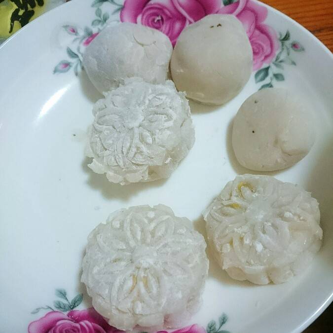 自从得病后就不敢吃广式月饼了,开始自己动手做冰皮月饼。去年乱做反而成功了。今年完全按照配方做冰皮月饼,结果皮超级粘手,失败告终…哎,我还准备了粉粉的栗子啊