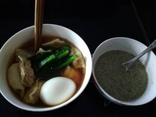 今天早餐晚了一个小时自给自足丰衣足食自制饺子 抄手 小麦胚芽 芝麻糊 鸭蛋