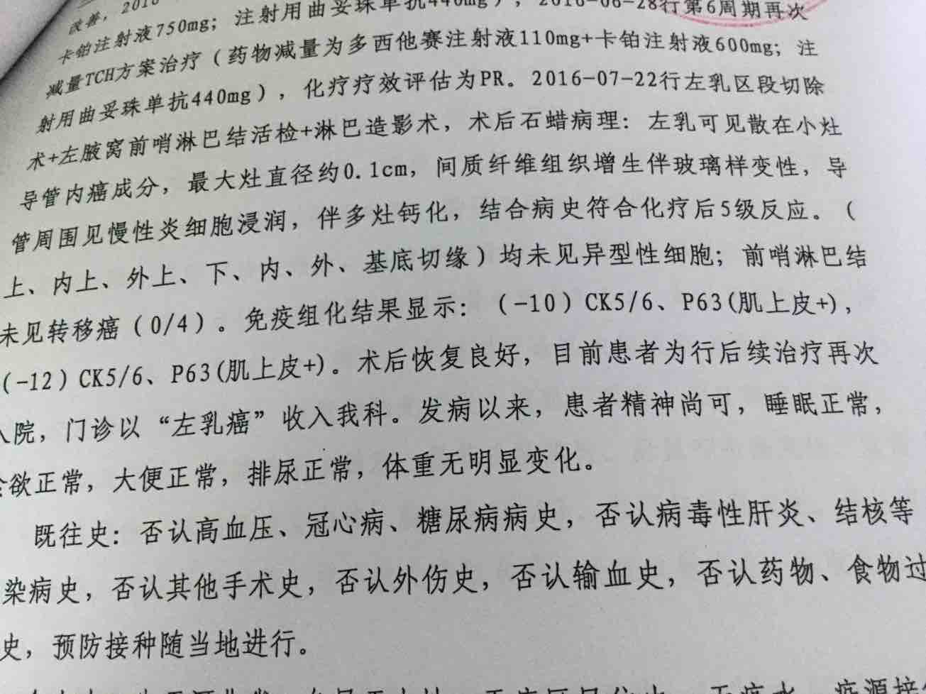 化疗效果非常好,只有导管内癌成分,病理完全缓解!