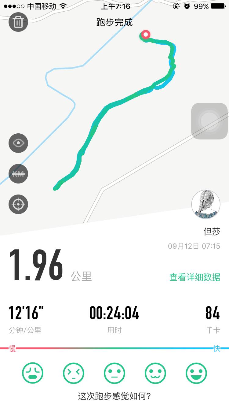 第一天跑步,一个月没有运动,慢跑了500米心脏就感觉已经受不了了,为了不让身体负荷不了,我只能快走了1500米。希望第二天第三天能慢慢让身体适应过来。加油吧