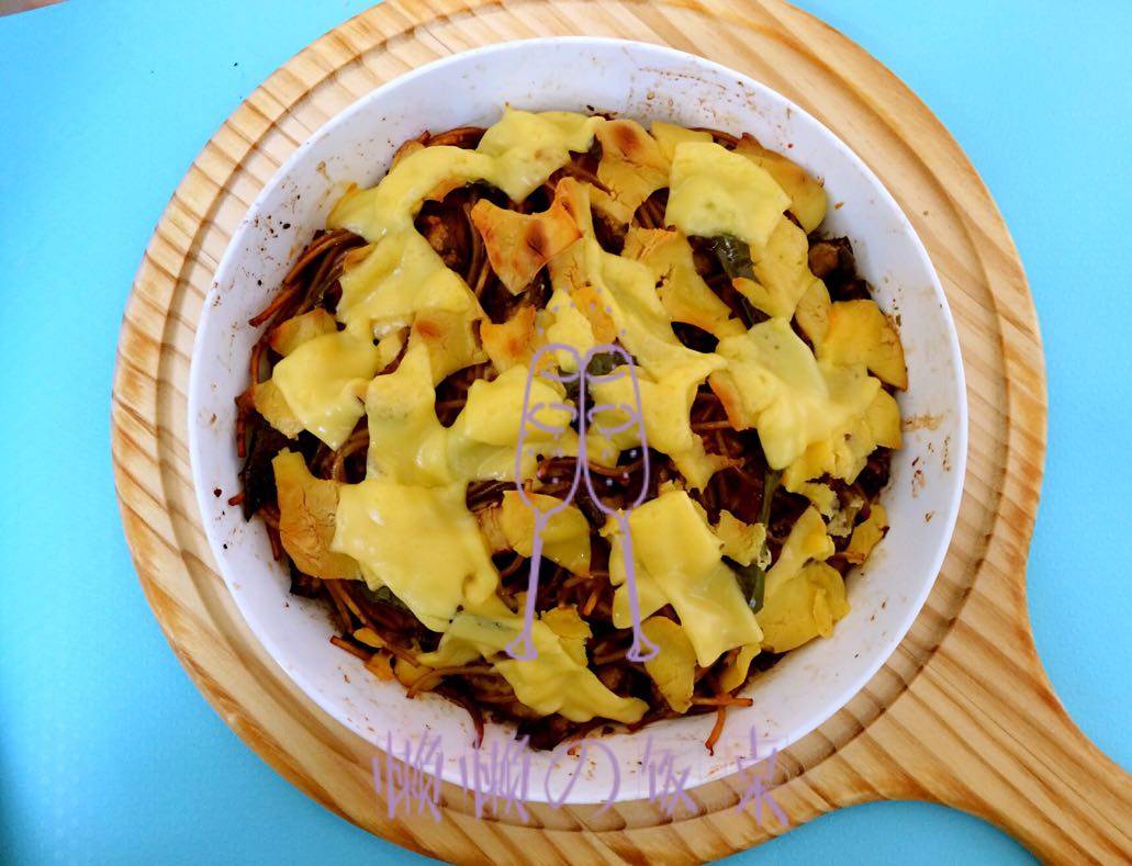 昨天电视上偶尔看到做焗烤茄子的,正好今天也不用焖饭,把意面和茄子一起烤了