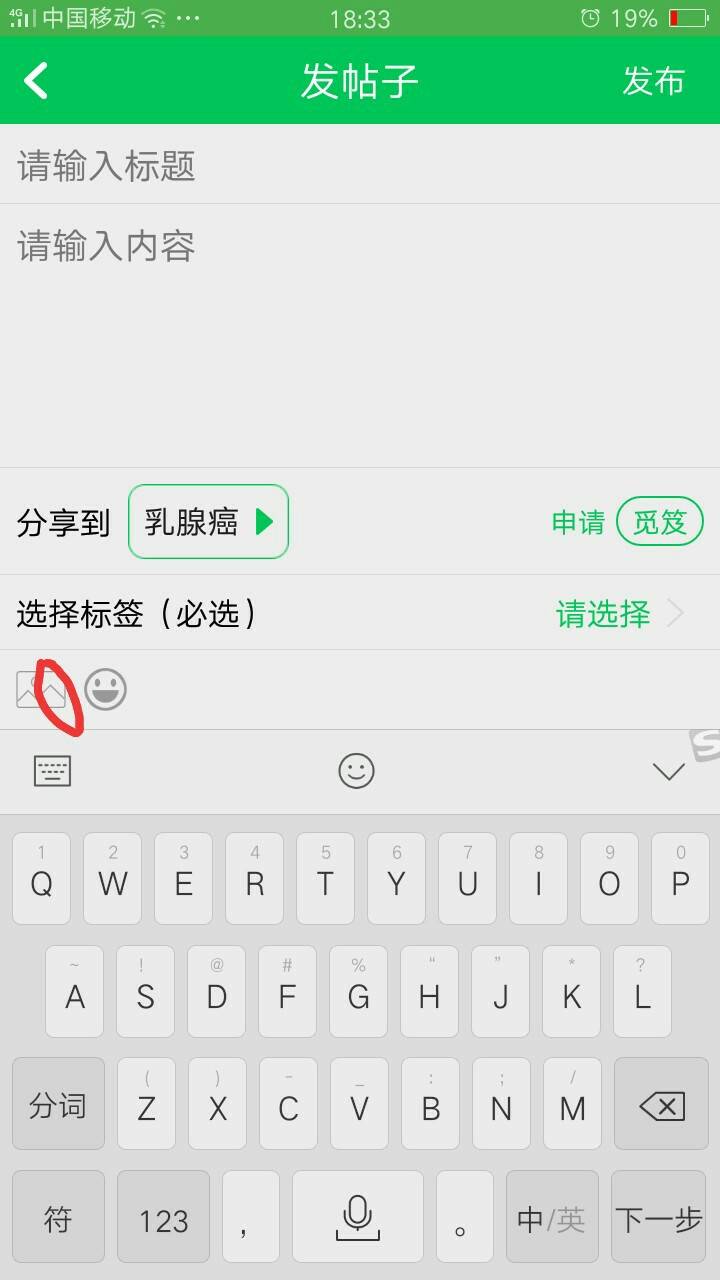 在你发字得下面有个框点开就可以了,慢慢来
