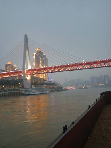 今天和老公坐他们上班的船游了一圈重庆的夜景!回到家!感觉有点累了!